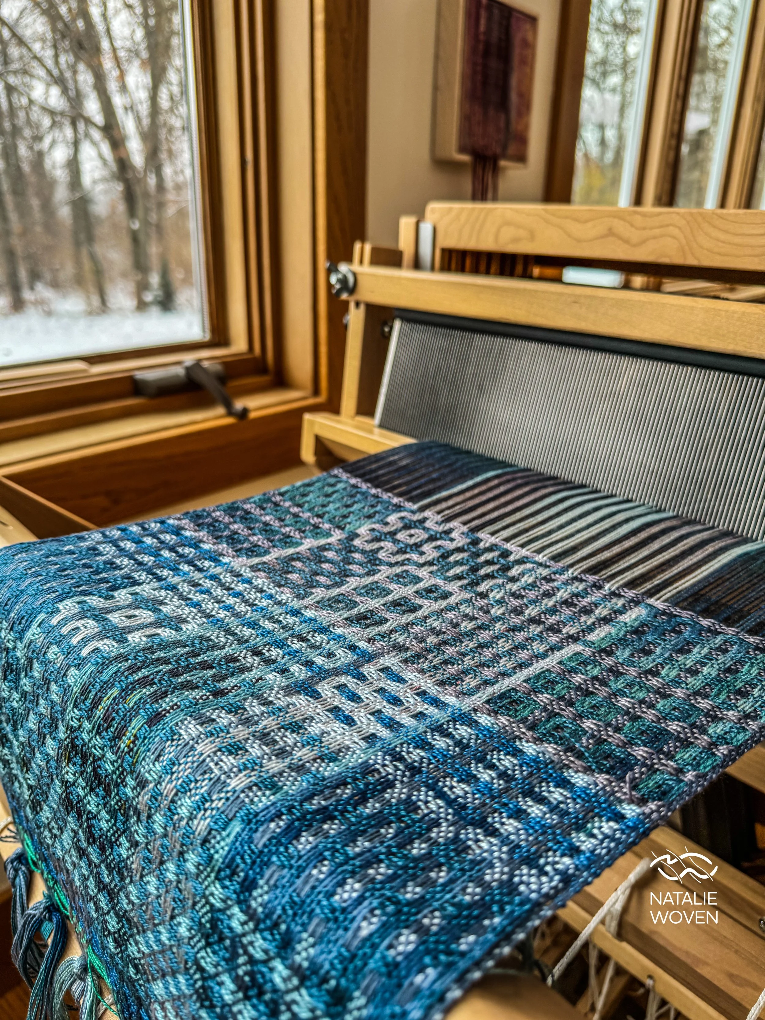 Weaving with ice dyed yarns is so much fun! I always like to be able to show weavers how beautiful your resulting yarns can be! Here’s what I’ve been weaving with my developed palette: Deflected Doubleweave 8 Shaft!