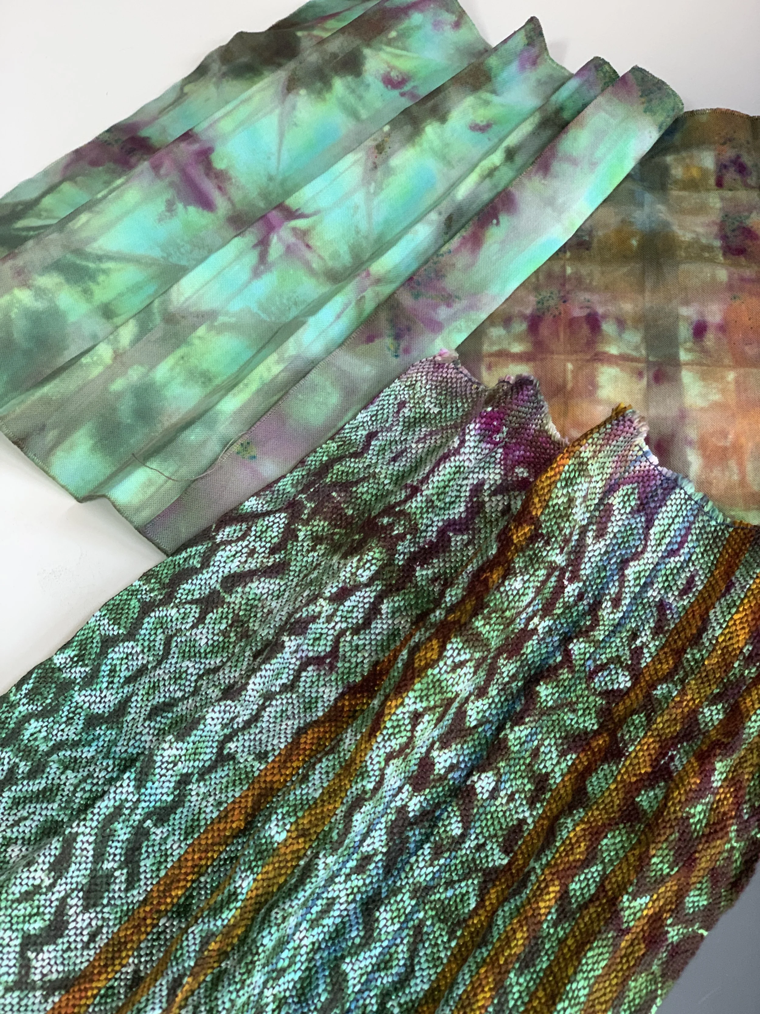 I’ll publish my drafts with further learning this fall as part of my Ice Dyeing Monograph. I’ve got a few more samples in the dye tub with a similar palette. The Ice Dye Monograph focuses on color palettes using two different ice dyeing methods.